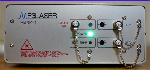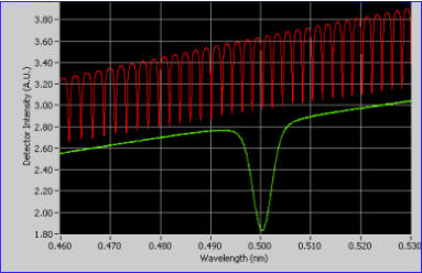 Complete turnkey system for narrow range (4nm) precision (10fm resolution) spectroscopy (eg: WGM)10fm 0.2-30Hz rms noise, 1pm/hr long term drift*1310nm 5mW pigtailed DFB laser with 60dB isolation included. 1064 nm or 1550 nm optional.Optionally compatible with any 14pin butterfly laser package (DFB, DBR, etc.)Low noise (<1uA rms 0.5MHz) 100mA current controller (200mA/250mA/500mA optional) Hardware laser diode current limit protection, laser safety interlock2x 2.5Watt Peltier PI controller (0.01C) for internal laser and external resonator temperature control2x InGaAs 1mm2 detectors (800-1750nm) with 8 ranges of adjustable gain, FC connector15 bit internal arbitrary direct digital signal synthesizer for laser current and temperature modulationFull digital laser control and monitor with 2x external synched analog inputs10kS/sec/channel or 1MS/sec/single channel sampling rateFree software suite written by active WGM researcher and NI Certified LabVIEW ArchitectIntel i5 Windows laptop preloaded with all necessary softwareCompact footprint of 26 x 18 x 8 cm and external medical grade international power adapterSpectrum measurements recorded by MARK-I. HF atomic absorption line and resonance of a 50cm Whispering Gallery Mode ring resonator*measured using HF P(2) standard, equipped as specified